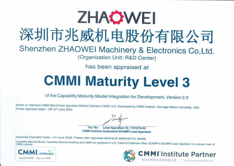 智能制造三级成熟度荣誉证书。